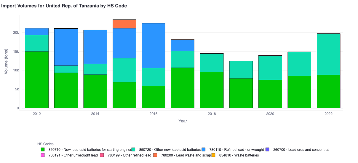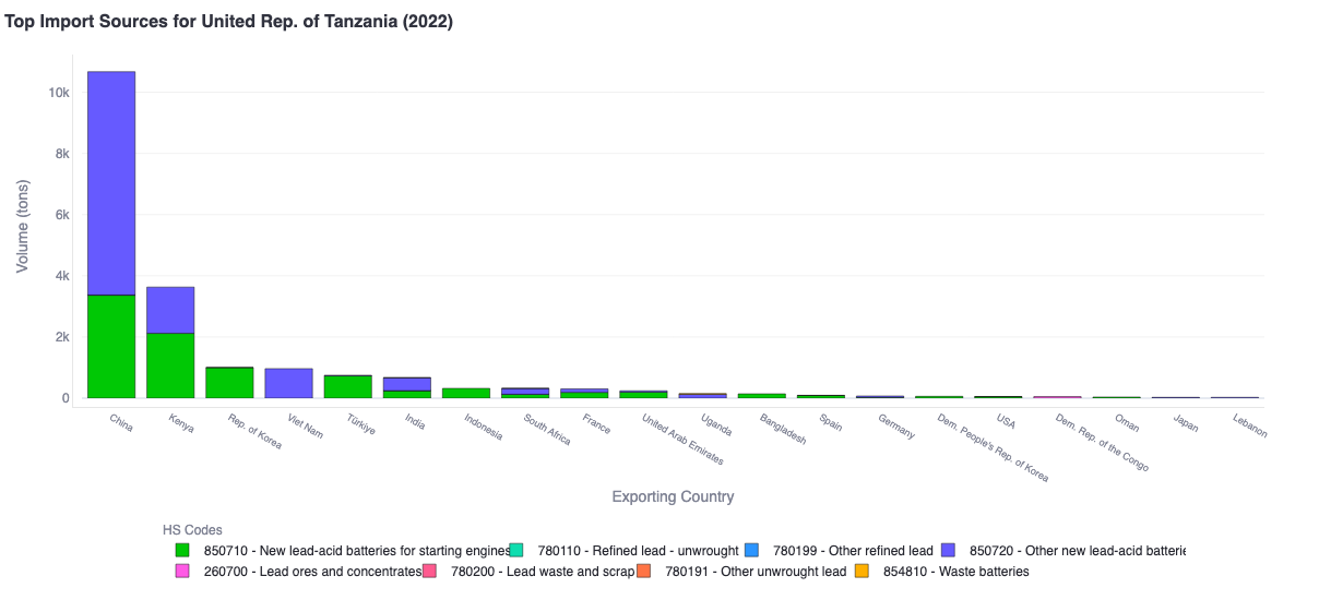 There you have it — in less than 5 minutes, we were able to get a decent preliminary understanding of Tanzania’s lead and lead-acid battery trade.